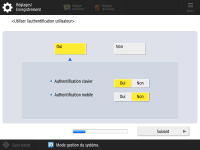 Spécifiez les réglages pour l'authentification de l'utilisateur.