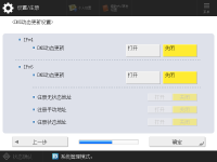 指定DNS服务器地址、DNS主机名和DNS域名。 ![]() ![]() 按<主DNS服务器>和<辅助DNS服务器>,输入DNS服务器的IPV4/IPv6地址,并按<下一步>。 有关设置DNS服务器地址的信息,请参阅设置DNS。 ![]() ![]() 按<主机名>输入本机名称(主机名)。按<域名>输入本机所属的域名并按<下一步>。 如果IPv4和IPv6的设置相同,为<使用与IPv4相同的主机名/域名>按<打开>。 ![]() ![]() 要使用“DNS动态更新设置”自动更新,为<DNS动态更新>按<打开>,并按<确定>。 如果为<IPv6>将<DNS动态更新>设置为<打开>,选择<打开>以便项目自动注册。 | |