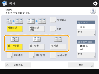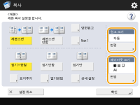 양면 원고로 소책자 복사를 수행하는 경우, <양면원고>를 누르고 필요에 따라 <좌우열기> 또는 <상하열기>를 선택하십시오.