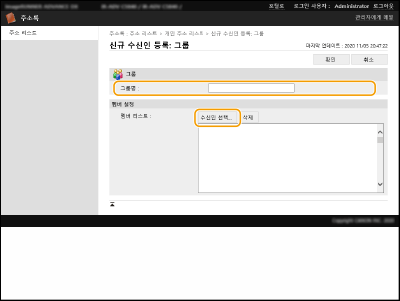 [관리자용 주소 리스트]는 관리자 또는 장치 관리자 권한으로 로그인한 사용자만 사용할 수 있습니다.