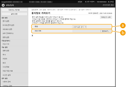 3 | [찾아보기...]를 클릭하고 가져오기할 설정 데이터를 지정하십시오. |