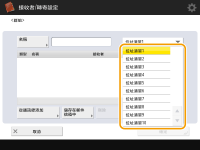 2 | 選擇要在群組中註冊的接收者,然後按 <確定>。 ![]() 接收者類型按鈕選擇 (電子郵件)、 (傳真)、 (I-fax) 或 (檔案)篩選通訊清單 ( ) 中顯示的接收者。按 <全部> 顯示所有註冊的接收者。 接收者您於步驟 6 中選擇的通訊清單內註冊的接收者將顯示。從此清單中,選擇要在群組中註冊的接收者。 ![]() 使用存取號碼管理接收者時,除非您輸入存取號碼 (限制對在通訊錄註冊之接收者的存取),否則這些接收者不會在按 <存取號> 後於清單中顯示。 <詳細資訊/編輯>如果要檢查接收者的設定,請選擇接收者,然後按 <詳細資訊/編輯>。按 <確定> 返回上一畫面。 首個字母按鈕選擇接收者名稱第一個字元的英數按鈕。按 <全部> 以顯示所有註冊的接收者。 |