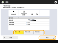您可將按下 (啟動) 前指定的一連串接收者、掃描或傳送設定,另存為一組「先前的設定」。