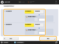 Canon 多功能印表機支援 AES 加密方法的兩種金鑰長度:128 位元和 256 位元。若要將金鑰長度限制為 256 位元並符合 CC 認證標準,將 <僅允許AES鍵值長度為256-bit> 設為 <開啟>。