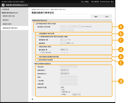 按一下 [裝置管理]  [憑證發行要求的設定(SCEP)]。