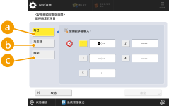 4 | 按下 <記憶體鎖定結束時間>,然後指定所需的設定。 ![]() <每日>設定記憶體接收的結束時間。 <指定日>設定記憶體接收的結束日期與時間。 <關閉>當您不想設定記憶體接收結束時間時,請選取此選項。
