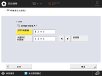 使用 Proxy 伺服器的認證功能時,按下此按鍵設定認證資訊。在顯示的畫面上按下 <開啟>,並輸入 Proxy 認證的使用者名稱和密碼,然後按 <確定>。