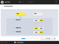 若要加強本機的安全,請在採行使用者認證的系統下使用本機。 ![]() 本機設定為採行使用者認證作為登入服務。有關詳細資訊,請參閱指定個人認證管理設定。 ![]() 對於 <使用使用者認證> 按 <開啟>,並對於要使用的登入方法按 <開啟>,然後按 <下一步>。 如果不採行使用者認證,對於 <使用使用者認證> 按 <關閉>,並且按 <確定>,然後前進至步驟 6。 ![]() 如果除了在本機中註冊的「Administrator」使用者之外就沒有任何其他系統管理員,請指定以下設定。 ![]() 若要透過停用「Administrator」使用者及註冊新系統管理員來加強本機的安全性,請按下 <是>。在 <註冊管理員> 中輸入 <使用者名稱> 和 <密碼>,然後按下 <確定>。視需要指定 <電子郵件位址>、<部門識別碼> 及 <顯示名稱>。如需詳細資訊,請參閱 在本機裝置上註冊使用者資訊。下次登入時,「Administrator」使用者將被停用。 若要以「Administrator」身分進行操作,請按下 <否>。 ![]() ![]() 選擇顯示登入畫面的時機。如果選擇 <選擇功能時顯示>,請按下 <功能>、選擇要顯示登入畫面的功能,然後按下 <確定>。此外,請在 <設定/註冊> 畫面上選擇要顯示登入畫面的設定項目。 如果在 <簡單登入> 和 <鍵盤認證> 中選擇 <關閉>,請按下 <確定>。繼續步驟 6。 如果在 <簡單登入> 或 <鍵盤認證> 中選擇 <開啟>,請按下 <下一步>。 ![]() ![]() 若只要在登入畫面上透過數字鍵輸入的方式進行認證,請按下 <開啟>。 如果在 <簡單登入> 中選擇 <關閉>,請按下 <確定>。繼續步驟 6。 如果在 <簡單登入> 中選擇 <開啟>,請按下 <下一步>。 ![]() ![]() 按下 <開啟> 強制以圖片登入方式輸入 PIN,或按下 <關閉> 不強制輸入,然後按下 <下一步>。 ![]() ![]() 如果使用「圖片登入」,而且需要適合列印所用的設定組態,請按下 <開啟>。強制保留列印會啟用,使用者註冊會設為使用電腦的列印資料,並且會預設顯示適合使用者列印的登入畫面。如需詳細資訊,請參閱 指定強制保留列印設定、<使用者註冊方法> 及 <變更簡單登入螢幕的預設顯示>。 ![]() ![]() 選擇「圖片登入」畫面上的預設按鈕數字,並且按 <確定>。 | |