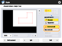 Můžete také zadávat oblasti s komplikovaným tvarem, jak je znázorněno na obrázku níže. V kroku 7 stiskněte na obrazovce volbu <Zadat více bodů> a zadejte oblast pomocí 4 až 10 bodů. Po zadání posledního bodu stiskněte <Nast. více bodů> a potvrďte oblast. Pokud používáte tuto metodu, lze zadat pouze jednu oblast. Navíc nemůžete současně označit pravoúhlou a mnohoúhelníkovou oblast.