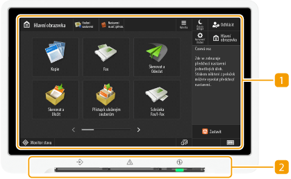 Bliká během probíhající operace, např. při odesílání nebo tisku. Rozsvítí se zeleným světlem, když nějaké dokumenty čekají na zpracování.