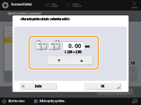 Používáte-li volitelný finišer brožur a zjistíte, že sklady papíru nejsou přesně ve středu brožury, upravte polohu skladů pro sedlové sešití s pomocí tohoto nastavení.