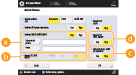 Chcete-li kódovat komunikaci s pomocí TLS při příjmu e-mailů a I-faxů s pomocí serveru SMTP, stiskněte <Vždy TLS> nebo <Zap>. Nechcete-li vyjma kódovaných dat přijímat žádná jiná data, vyberte <Vždy TLS>.