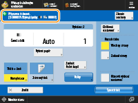 Zde se zobrazuje stav nastavení, např. velikost papíru, na který se má tisknout, a počet výtisků. V zájmu správného tisku dokumentů nastavení vždy zkontrolujte. Chcete-li nastavení změnit, stiskněte tlačítko pod zobrazením. Chcete-li změnit počet výtisků, zadejte počet s pomocí číselných tlačítek.