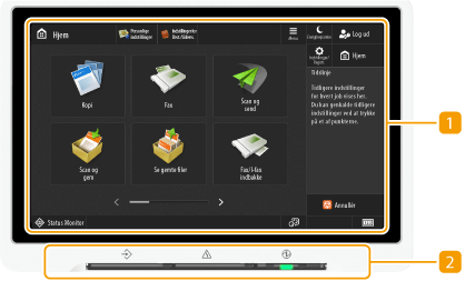 Blinker, når der udføres betjeninger som f.eks. afsendelse eller udskrivning. Lyser grønt, når dokumenter venter på at blive behandlet.