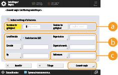 Du kan tjekke detaljerede indstillinger eller slette nøgler og certifikater på det skærmbillede, der vises, når du trykker på  (Indstillinger/Registrering) <Administrationsindstillinger>  <Enhedsadministration>  <Indstillinger for certifikat>  <Liste med nøgler og certifikater>. Hvis listen med nøgler og certifikater ikke vises, skal du trykke på <Nøgle-og certifikliste til denne maskine> for at vise den.