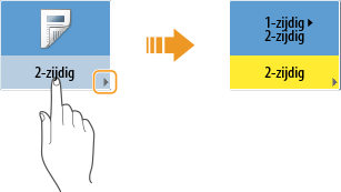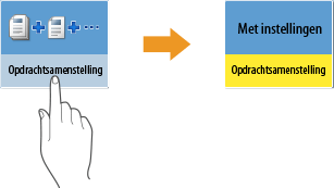 zich bevindt om het instellingenscherm weer te geven. Wanneer de instelling is gewijzigd, wordt de instellingenstatus bovenaan de knop weergegeven en verandert de kleur van het onderste gedeelte.