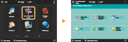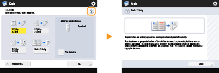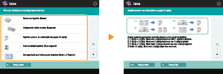 De functiegids en pagina met veelgestelde vragen bekijkenDruk op <Cursus/Veelgestelde vragen> om een scherm weer te geven waarop wordt aangegeven wat u kunt doen met de functies van de machine en waarop tips staan voor het kopiëren, scannen, enz. Bekijk dit scherm wanneer u meer informatie wilt over welke functies beschikbaar zijn en hoe u ze moet gebruiken. U kunt de pagina met veelgestelde vragen ook openen vanaf een mobiel apparaat.