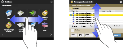 Doe het op dezelfde manier als op een smartphone (vegen/knijpen/slepen en neerzetten)Op sommige schermen kunt u tussen pagina's schakelen of bladeren door met uw vingers op en neer of van links naar rechts over het scherm te schuiven, zoals u dat op een smartphone zou doen.