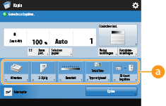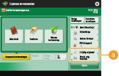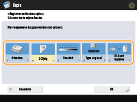Opslaan in <Favorieteninstellingen>Bij <Favorieteninstellingen> kunt u veelgebruikte procedures voor kopiëren opslaan, evenals vaak opgegeven bestemmingen en instellingen voor scannen. Voor meer informatie raadpleegt u Een combinatie van veelgebruikte functies registreren.