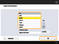 onderaan het aanraakscherm. U kunt de momenteel weergegeven taal naar een andere taal omschakelen door op de <Andere Taal/Toetsenbord>-knop te drukken, selecteer de gewenste taal in de lijst en druk vervolgens op <OK>.