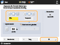 Om het afbeeldingsformulier te projecteren zonder de densiteit aan te passen, drukt u op <Effen>. Om het afbeeldingsformulier te projecteren met een lagere densiteit, drukt u op <Transparant> en past u de densiteit aan.