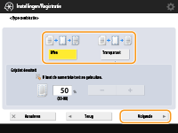 Als u bij het maken van een 2-zijdige kopie het afbeeldingsformulier wilt projecteren op de achterzijde, configureert u <Achterzijde>. Om hetzelfde afbeeldingsformulier als op de voorzijde te projecteren, drukt u op <Zelfde als voorzijde>. Om een ander afbeeldingsformulier dan op de voorzijde te projecteren, drukt u op <Instellen> en gaat u verder naar stap 5.