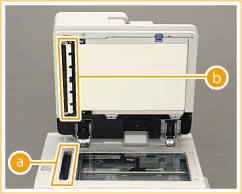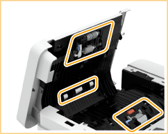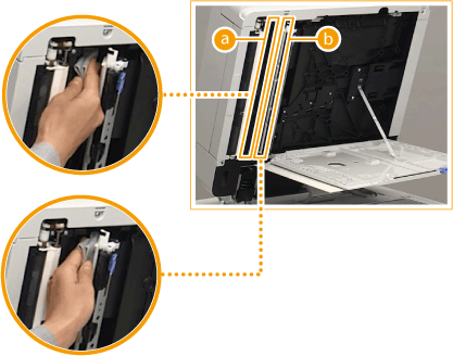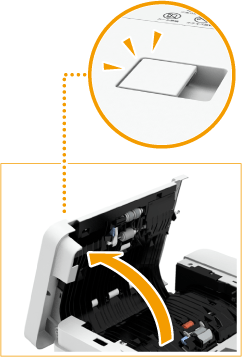 Trek aan de bovenste hendel om de klep van het scangebied van de documentaanvoer te openen.