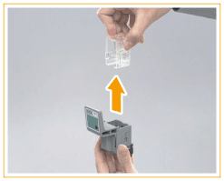 Steek het lipje van de nietpatroon in de nietpatroonhouder en laat de nietpatroon zakken om deze te bevestigen.