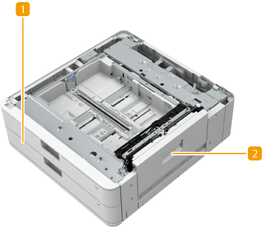 Hiermee kunt u twee papierladen toevoegen. Het plaatsen van verschillende papierformaten in de optionele papierladen betekent dat het papier minder vaak hoeft te worden verwisseld.