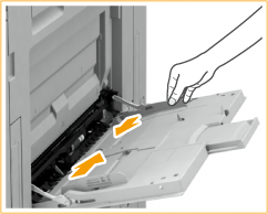 Schuif de papiergeleiders naar buiten totdat de tussenruimte iets breder is dan de werkelijke breedte van het papier.