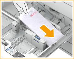 Plaats de enveloppen zoals hieronder aangegeven, met de voorkant van de enveloppen (de kant zonder gelijmde delen) omhoog. Plaats 50 enveloppen tegelijk.