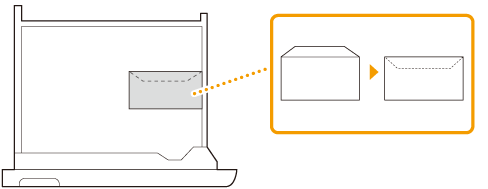 In dit gedeelte wordt uitgelegd hoe u enveloppen in de gewenste afdrukstand plaatst. Daarnaast worden de stappen besproken die u moet uitvoeren voordat u enveloppen plaatst. Zie Basisprocedure voor het plaatsen van papier voor een beschrijving van de algemene procedure voor het plaatsen van enveloppen in de papierlade of op de papiertafel.
