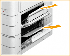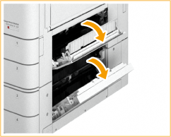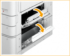 Open de rechterboven- en onderklep van de papierlade.