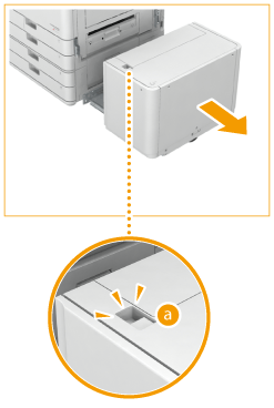 Druk op en trek het papiermagazijn van de hoofdeenheid weg.