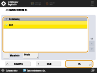 Als <Aan> is geselecteerd voor <Instellingen/Registratie waarde>, wordt het scherm voor het instellen van al dan niet verdelen van de <Netwerkinstellingen>-apparaatgegevens weergegeven. Om deze gegevens te verdelen, drukt u op <Inclusief>  <OK>.