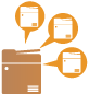 Verschillende machine-instellingen (apparaatgegevens) kunnen via het netwerk worden verzonden en automatisch worden toegepast op andere multifunctionele Canon-printers. Met deze functie kunt u een hostmachine toewijzen waarvan geregistreerde gegevens (zoals de instellingen in het menu Instellingen/Registratie en adressenlijsten) worden gedeeld met andere clientmachines, zodat u daarop dezelfde instellingen kunt configureren als op de hostmachine. Dat maakt het gemakkelijker om nieuwe multifunctionele printers aan uw systeem toe te voegen, en kunt daardoor meerdere machines met dezelfde instellingen bedienen. Zo worden beheerbewerkingen vergemakkelijkt, zelfs als u het aantal machines verhoogt. Voor meer informatie over de machinegegevens die kunnen worden gedeeld, raadpleegt u Instellingen/Registratie.