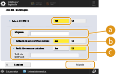 Om een algemene naam in het servercertificaat te verifiëren, selecteert u <Aan> bij <Verificatieservernaam controleren> en voert u de naam van de verificatieserver in die door de aangemelde gebruiker is geregistreerd bij <Verificatie servernaam>.