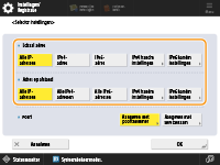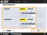 Druk op <Aangeven met poortnummer> om poortnummers te gebruiken bij het opgeven van de poorten waarop IPSec van toepassing is. Selecteer <Alle poorten> om IPSec op alle poortnummers toe te passen. Om IPSec op een specifiek poortnummer toe te passen, drukt u op <Enkelv. poort> en voert u het poortnummer in. Na opgave van de poorten drukt u op <OK>. Geef de poort van deze machine op bij <Lokale poort> en van de communicatie-evenknie bij <Poort op afstand>.