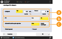 Als u de PFS-functie (Perfect Forward Secrecy) instelt op <Aan>, wordt de beveiliging van de versleutelingssleutel verhoogd, maar wordt de communicatiesnelheid trager. Daarnaast moet de PFS-functie op het apparaat van de communicatie-evenknie zijn ingeschakeld.