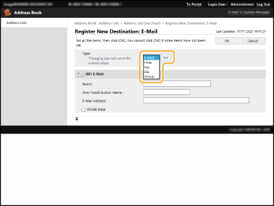 [Address List for Administrators] is alleen beschikbaar voor beheerders die zich aanmelden met beheerders- of apparaatbeheerdersbevoegdheden.