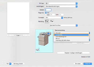 Selecteer [In wachtrij] in [Taakverwerking] van het deelvenster [Speciale functies].