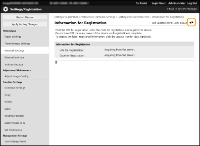 Zodra de registratie is voltooid, verschijnt [Registered] in [Registration Status].