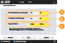 Als u het authentificatietype instelt, wordt de instelling voor <Gebruik SMB-authentificatie> bij <Instellingen SMB-server> met <Aan> ingeschakeld. <Instellingen SMB-server>