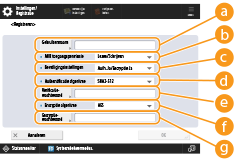 Stel een combinatie van verificatie en codering in. Selecteer <Auth. Ja/Encryptie Ja>, <Auth. Ja/Encryptie Nee> of <Auth. Nee/Encr. Nee>.