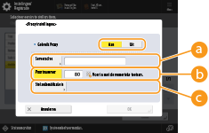 De DNS-serveradresinstellingen en proxy-instellingen voor de sublijn kunnen alleen worden gebruikt voor specifieke systeemdatacommunicatie, zoals het gebruik van de sublijn voor toegang tot een firmwaredistributieserver. Ze kunnen niet worden gebruikt voor een normale internetverbinding. Als een DNS-server of proxyserver wordt gebruikt voor de sublijn voor andere toepassingen dan systeemdatacommunicatie, registreert u de adressen en poortnummers die met de sublijn moeten worden gebruikt, in de instellingen van de hoofdlijn.
