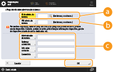 Introduza um número de 7 dígitos ou menos para o novo PIN do administrador do sistema e carregue em <Confirmar>. Para confirmar, introduza o PIN novamente e carregue em <OK>.