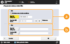 Se programar <Utilizar DHCPv6> para <Ligado> relativamente às programações do endereço com continuidade (Programar um endereço IPv6), o nome de domínio configurado manualmente é substituído. Se programar <Utilizar o mesmo nome de anfitrião/domínio que IPv4> para <Ligado>, é utilizado o nome de domínio obtido do servidor DHCPv6.