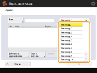 Выберите (электронная почта),  (факс), (И-факс) или  (файл), чтобы отфильтровать адресатов, которые отображаются в списке адресов (). Нажмите кнопку <Все>, чтобы отобразить всех зарегистрированных адресатов.