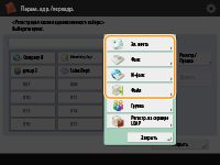 Для удобства работы часто используемых адресатов можно зарегистрировать для кнопок однокнопочного набора. Благодаря этому указать адресата можно простым нажатием кнопки. Помимо номера факса или адреса электронной почты, для кнопки однокнопочного набора можно зарегистрировать папку на файловом сервере (IP-адрес и путь), которую следует использовать для хранения отсканированных материалов.