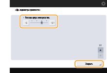 Настройте громкость звукового сигнала, который воспроизводится после завершения получения или отправки факсимильных сообщений (кроме распечатки полученных факсов), а также громкость звукового сигнала, который воспроизводится при отмене или завершении отправки факса из-за ошибки. Чтобы отключить звук, нажмите  несколько раз, чтобы настроить громкость влево до упора.